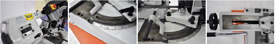Модель Stalex BS-128HDR предназначена для пиления заготовок под различными углами на небольшом производстве, в вспомогательных участках, а также в бытовом использовании и в мастерских. Подъём пильной рамы и зажим заготовки осуществляется оператором вручную. Скорость опускания пильной рамы, регулируется гидравликой (для модели Stalex BS-128HDR). Простая конструкция с ременным приводом делает станок простым в эксплуатации. Удобная, быстро перестраиваемая система регулировки позволяет с минимальными потерями времени переходить на пиление различных размеров под разными углами -45° 0° +45° +60° (для работы с заготовками под углом -45° необходимо сместить тиски.