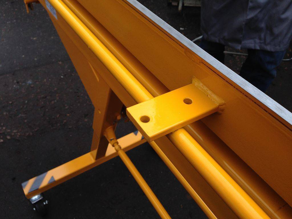 Небольшой для проходных стальных листогибов такого типа вес станка в сочетании с установленными на опоры колесами рояльного типа позволяют легко перемещать листогиб. Удобная и безопасная работа без смещения станка во время работы благодаря колесам с фиксаторами.