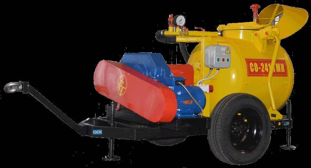 Пневмонагнетатель СО-241 ТМК позволяет готовить и транспортировать смеси к непосредственному месту укладки. Он незаменим при обустройстве наливных полов, монолитном домостроении, выполнении опалубки и кладке мягкой кровли.